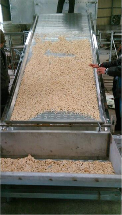 該機是由三段串聯(lián)組成,可以控制好瓜子在各個干燥階段需要適用的溫度,使用時首先將潮濕的瓜子均勻的鋪在干燥機前段的網(wǎng)帶上,進(jìn)入這個階段后,瓜子會受到熱風(fēng)向上向下的交替吹,這樣可以將瓜子均勻的加熱,加快加熱速度,保證了瓜子的質(zhì)量.采用導(dǎo)熱油加熱系統(tǒng),散發(fā)出的風(fēng)溫度高,更適用于瓜子的干燥特點,在干燥的過程中,網(wǎng)帶的串聯(lián)結(jié)構(gòu)可以使瓜子均勻的受熱,設(shè)備還有冷卻段,這樣吹干的瓜子可以直接進(jìn)入包裝程序,提高了工作效率.目前瓜子幾乎是每家每戶食用的食品,因此瓜子烘干機的應(yīng)用會越來越廣泛,前景會越來越好.