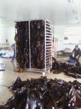 我國海岸線延綿上萬公里,海帶種植面積很大,但如何將天然鮮海帶變成干海帶,幾乎是靠天氣,而且曬出的干海帶的質量也很不穩(wěn)定;這幾年,我公司在山東威海某海產品科技公司的協(xié)助下,研制開發(fā)了一種天然鮮海帶烘干機,它幾乎可以添補天然原始海帶烘干的空白。