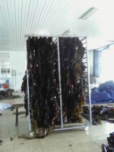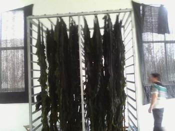 鮮海帶長度約1.5m~3m,寬度約20cm~45cm,表面特別粘滑,兩片海帶粘連在一起,幾乎沒法烘干和曬干,所以天然海帶烘干采取何種通風方式,海帶是選擇平鋪還是懸掛?就顯得極為關鍵。